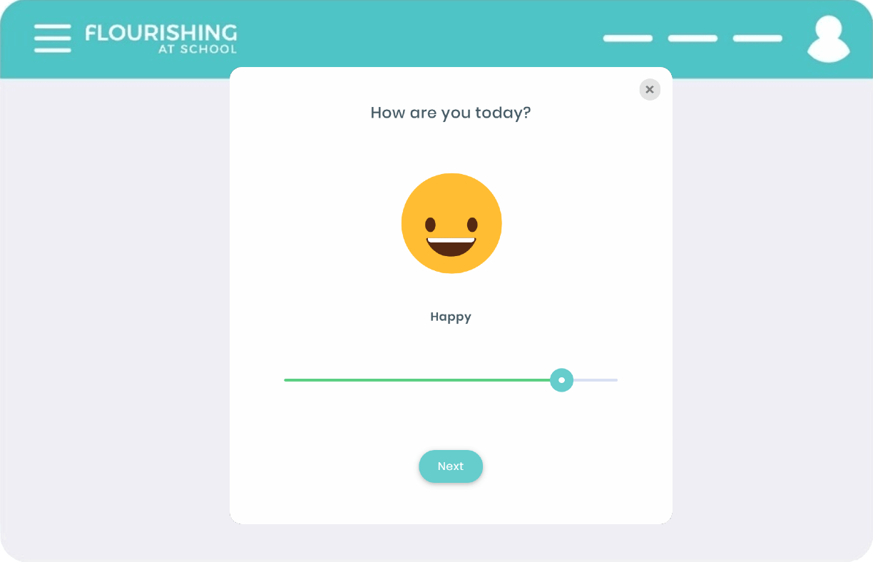 The ‘wellbeing check in’ is a short, 30 second survey to assess student mood